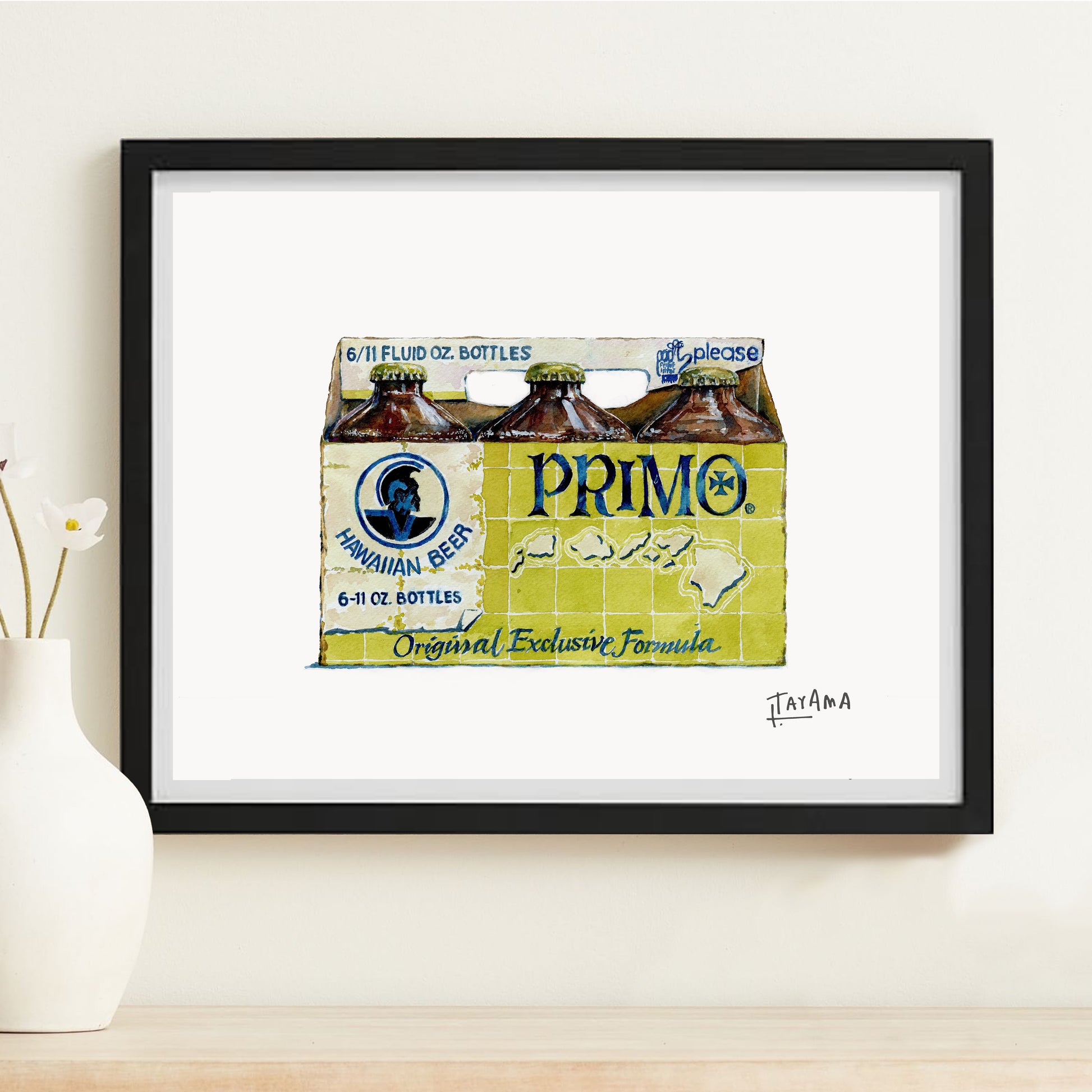 Primo Brewing Company was founded in 1897 in Honolulu, HI. Even though it was acquired in 1963 and relocated to LA, Primo still holds much nostalgia for many who grew up in Hawaii. Watercolor with a hint of gouache on 300lbs Arches Watercolor paper.